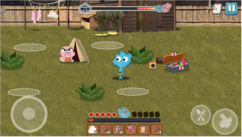 Os desafios aumentam com a presença de outros personagens, como Anais e Darwin, que podem representar perigos ao jogador. Gumball deve evitar ataques e gerenciar seu inventário, que tem capacidade limitada. O jogo combina elementos de estratégia e ação, oferecendo uma experiência divertida e dinâmica enquanto os jogadores tentam garantir a sobrevivência de Gumball em um cenário de apocalipse familiar.